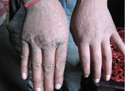此种类型患者的皮损覆盖了患者身上多个部位,脸部、手部、胸、背等,面积大,因此病情最严重。